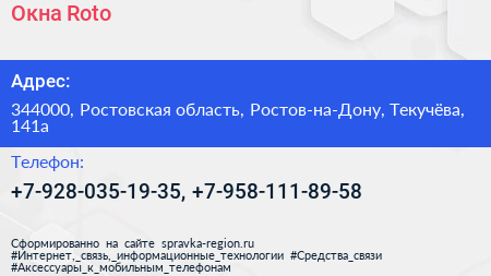 Окна Roto по адресу 344000, Ростовская область, Ростов-на-Дону, Текучёва, 141а в дальнейшем Организация, размещена в следующих категориях: