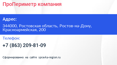ПроПериметр, компания по адресу 344000, Ростовская область, Ростов-на-Дону, Красноармейская, 200 в дальнейшем Организация, размещена в следующих категориях: