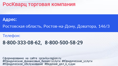 РосКварц, торговая компания по адресу Ростовская область, Ростов-на-Дону, Доватора, 146/3 в дальнейшем Организация, размещена в следующих категориях: