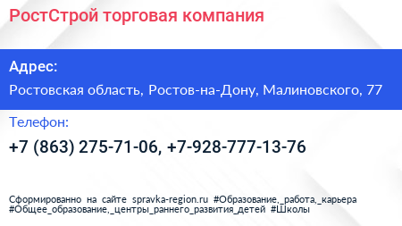РостСтрой, торговая компания по адресу Ростовская область, Ростов-на-Дону, Малиновского, 77 в дальнейшем Организация, размещена в следующих категориях: