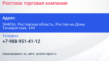 Ростлюк, торговая компания по адресу 344016, Ростовская область, Ростов-на-Дону, Таганрогская, 144 в дальнейшем Организация, размещена в следующих категориях:
