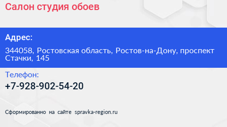 Салон-студия обоев по адресу 344058, Ростовская область, Ростов-на-Дону, проспект Стачки, 145 в дальнейшем Организация, размещена в следующих категориях: