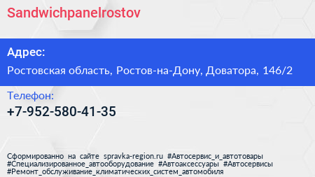 Sandwichpanelrostov по адресу Ростовская область, Ростов-на-Дону, Доватора, 146/2 в дальнейшем Организация, размещена в следующих категориях:
