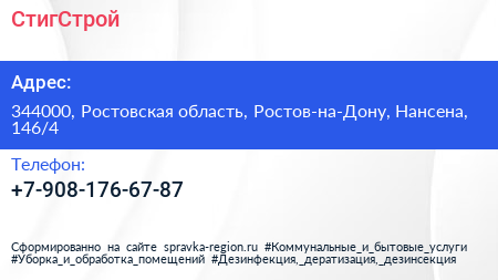 СтигСтрой по адресу 344000, Ростовская область, Ростов-на-Дону, Нансена, 146/4 в дальнейшем Организация, размещена в следующих категориях: