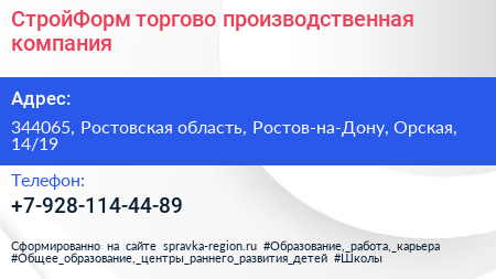 СтройФорм, торгово-производственная компания по адресу 344065, Ростовская область, Ростов-на-Дону, Орская, 14/19 в дальнейшем Организация, размещена в следующих категориях: