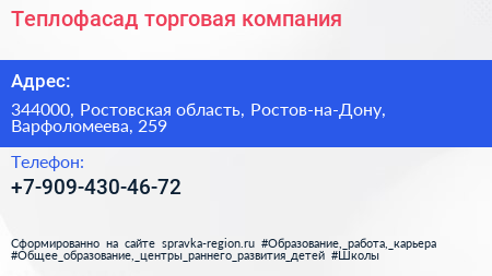 Теплофасад, торговая компания по адресу 344000, Ростовская область, Ростов-на-Дону, Варфоломеева, 259 в дальнейшем Организация, размещена в следующих категориях: