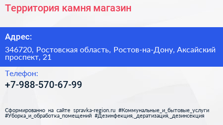 Территория камня, магазин по адресу 346720, Ростовская область, Ростов-на-Дону, Аксайский проспект, 21 в дальнейшем Организация, размещена в следующих категориях: