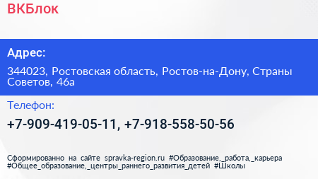 ВКБлок по адресу 344023, Ростовская область, Ростов-на-Дону, Страны Советов, 46а в дальнейшем Организация, размещена в следующих категориях: