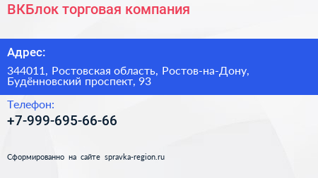 ВКБлок, торговая компания по адресу 344011, Ростовская область, Ростов-на-Дону, Будённовский проспект, 93 в дальнейшем Организация, размещена в следующих категориях: