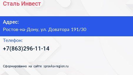 Сталь-Инвест по адресу Ростов-на-Дону, ул. Доватора 191/30 в дальнейшем Организация, размещена в следующих категориях: