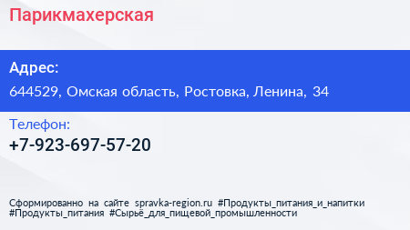 Парикмахерская по адресу 644529, Омская область, Ростовка, Ленина, 34 в дальнейшем Организация, размещена в следующих категориях:
