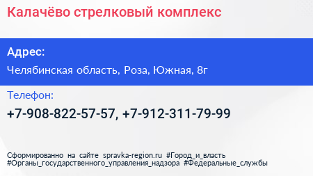 Калачёво, стрелковый комплекс по адресу Челябинская область, Роза, Южная, 8г в дальнейшем Организация, размещена в следующих категориях: