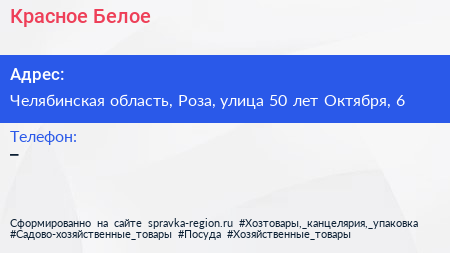 Красное & Белое по адресу Челябинская область, Роза, улица 50 лет Октября, 6 в дальнейшем Организация, размещена в следующих категориях: