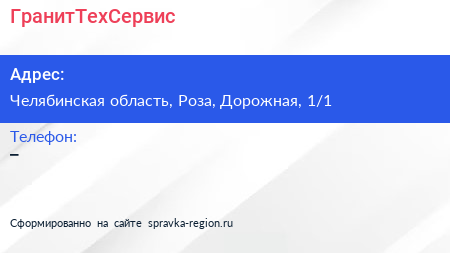 ГранитТехСервис по адресу Челябинская область, Роза, Дорожная, 1/1 в дальнейшем Организация, размещена в следующих категориях: