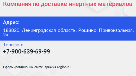 Компания по доставке инертных материалов по адресу 188820, Ленинградская область, Рощино, Привокзальная, 2а в дальнейшем Организация, размещена в следующих категориях: