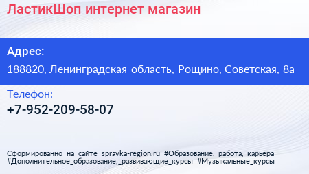 ЛастикШоп, интернет-магазин по адресу 188820, Ленинградская область, Рощино, Советская, 8а в дальнейшем Организация, размещена в следующих категориях: