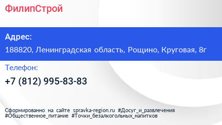ФилипСтрой по адресу 188820, Ленинградская область, Рощино, Круговая, 8г в дальнейшем Организация, размещена в следующих категориях: