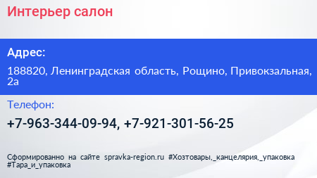 Интерьер, салон по адресу 188820, Ленинградская область, Рощино, Привокзальная, 2а в дальнейшем Организация, размещена в следующих категориях: