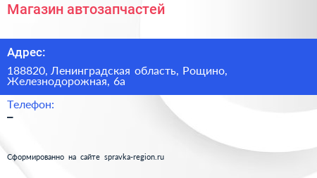 Магазин автозапчастей по адресу 188820, Ленинградская область, Рощино, Железнодорожная, 6а в дальнейшем Организация, размещена в следующих категориях: