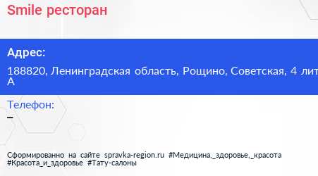 #Smile, ресторан по адресу 188820, Ленинградская область, Рощино, Советская, 4 лит А в дальнейшем Организация, размещена в следующих категориях: