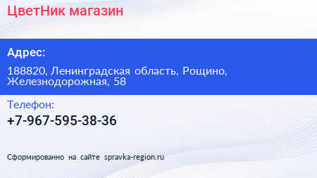 ЦветНик, магазин по адресу 188820, Ленинградская область, Рощино, Железнодорожная, 58 в дальнейшем Организация, размещена в следующих категориях: