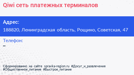 Qiwi, сеть платежных терминалов по адресу 188820, Ленинградская область, Рощино, Советская, 47 в дальнейшем Организация, размещена в следующих категориях: