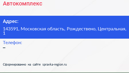 Автокомплекс по адресу 143591, Московская область, Рождествено, Центральная, 1 в дальнейшем Организация, размещена в следующих категориях: