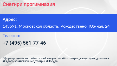 Снегири, прогимназия по адресу 143591, Московская область, Рождествено, Южная, 24 в дальнейшем Организация, размещена в следующих категориях: