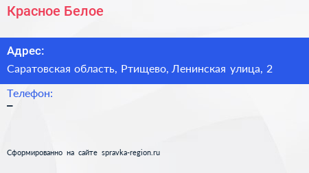 Красное & Белое по адресу Саратовская область, Ртищево, Ленинская улица, 2 в дальнейшем Организация, размещена в следующих категориях:
