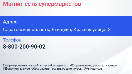 Магнит, сеть супермаркетов по адресу Саратовская область, Ртищево, Красная улица, 3 в дальнейшем Организация, размещена в следующих категориях: