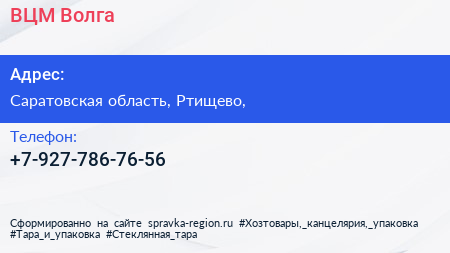 ВЦМ-Волга по адресу Саратовская область, Ртищево, в дальнейшем Организация, размещена в следующих категориях: