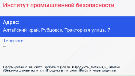 Институт промышленной безопасности по адресу Алтайский край, Рубцовск, Тракторная улица, 7 в дальнейшем Организация, размещена в следующих категориях: