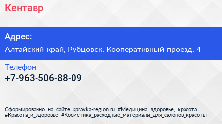 Кентавр по адресу Алтайский край, Рубцовск, Кооперативный проезд, 4 в дальнейшем Организация, размещена в следующих категориях: