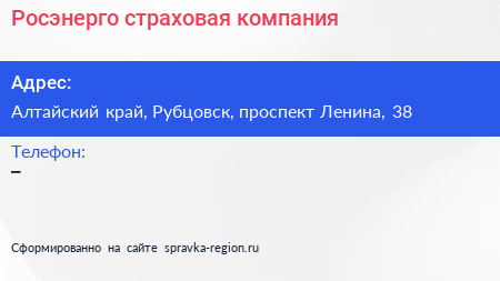 Росэнерго, страховая компания по адресу Алтайский край, Рубцовск, проспект Ленина, 38 в дальнейшем Организация, размещена в следующих категориях: