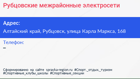 Рубцовские межрайонные электросети по адресу Алтайский край, Рубцовск, улица Карла Маркса, 168 в дальнейшем Организация, размещена в следующих категориях: