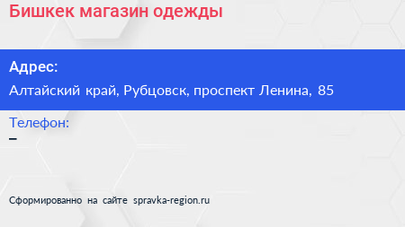 Бишкек, магазин одежды по адресу Алтайский край, Рубцовск, проспект Ленина, 85 в дальнейшем Организация, размещена в следующих категориях: