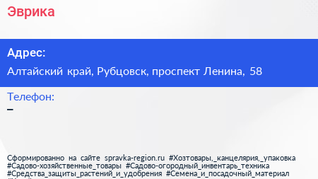 Эврика по адресу Алтайский край, Рубцовск, проспект Ленина, 58 в дальнейшем Организация, размещена в следующих категориях: