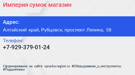 Империя сумок, магазин по адресу Алтайский край, Рубцовск, проспект Ленина, 58 в дальнейшем Организация, размещена в следующих категориях: