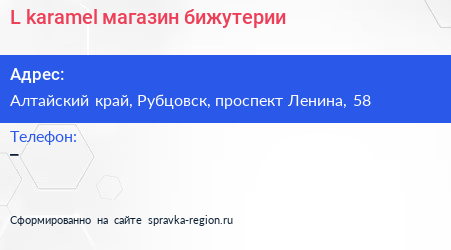 L`karamel, магазин бижутерии по адресу Алтайский край, Рубцовск, проспект Ленина, 58 в дальнейшем Организация, размещена в следующих категориях: