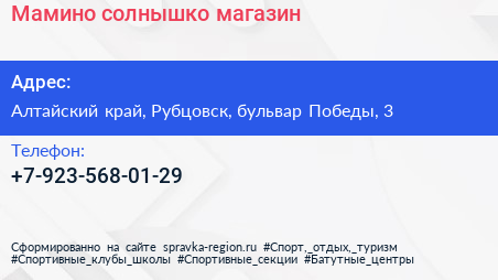 Мамино солнышко, магазин по адресу Алтайский край, Рубцовск, бульвар Победы, 3 в дальнейшем Организация, размещена в следующих категориях:
