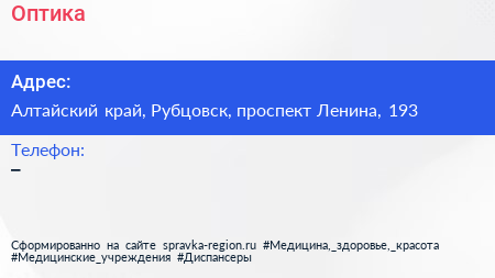 Оптика по адресу Алтайский край, Рубцовск, проспект Ленина, 193 в дальнейшем Организация, размещена в следующих категориях: