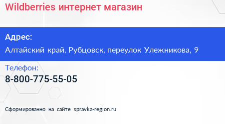 Wildberries, интернет-магазин по адресу Алтайский край, Рубцовск, переулок Улежникова, 9 в дальнейшем Организация, размещена в следующих категориях: