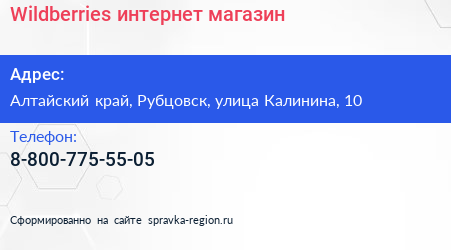 Wildberries, интернет-магазин по адресу Алтайский край, Рубцовск, улица Калинина, 10 в дальнейшем Организация, размещена в следующих категориях: