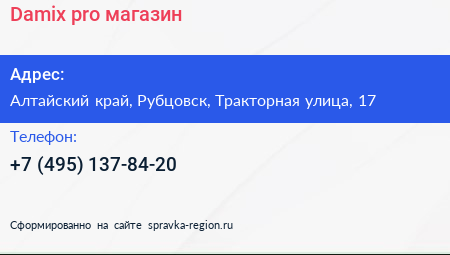 Damix pro, магазин по адресу Алтайский край, Рубцовск, Тракторная улица, 17 в дальнейшем Организация, размещена в следующих категориях: