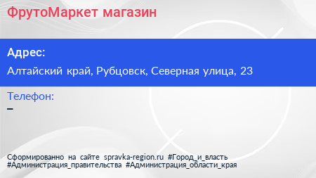 ФрутоМаркет, магазин по адресу Алтайский край, Рубцовск, Северная улица, 23 в дальнейшем Организация, размещена в следующих категориях: