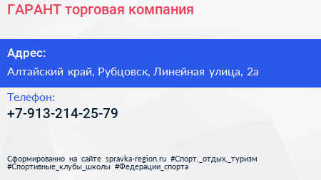 ГАРАНТ, торговая компания по адресу Алтайский край, Рубцовск, Линейная улица, 2а в дальнейшем Организация, размещена в следующих категориях: