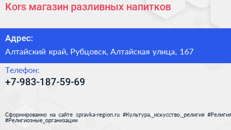Kors, магазин разливных напитков по адресу Алтайский край, Рубцовск, Алтайская улица, 167 в дальнейшем Организация, размещена в следующих категориях: