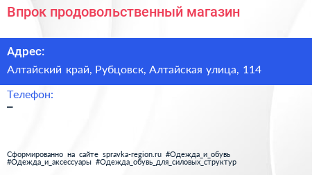 Впрок, продовольственный магазин по адресу Алтайский край, Рубцовск, Алтайская улица, 114 в дальнейшем Организация, размещена в следующих категориях: