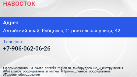 НАВОСТОК по адресу Алтайский край, Рубцовск, Строительная улица, 42 в дальнейшем Организация, размещена в следующих категориях: