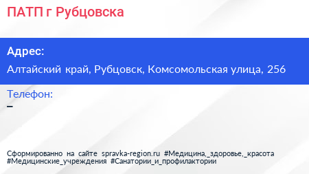 ПАТП г. Рубцовска по адресу Алтайский край, Рубцовск, Комсомольская улица, 256 в дальнейшем Организация, размещена в следующих категориях: